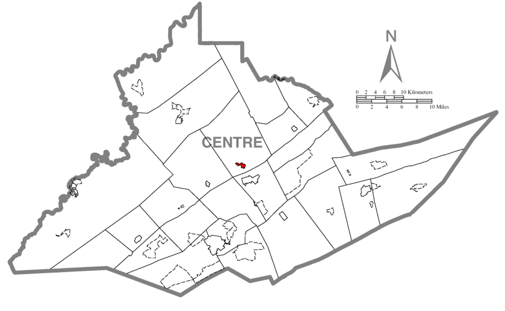 The red shaded area shows the location of Milesburg Borough within Centre County.